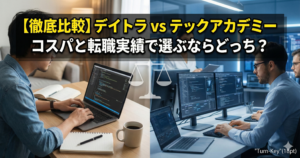 | こんな人におすすめ | 短期間で集中したい人、複数のスキルを本気で学びたい人 | 働きながらなど、自分のペースでゆっくり進めたい人 |