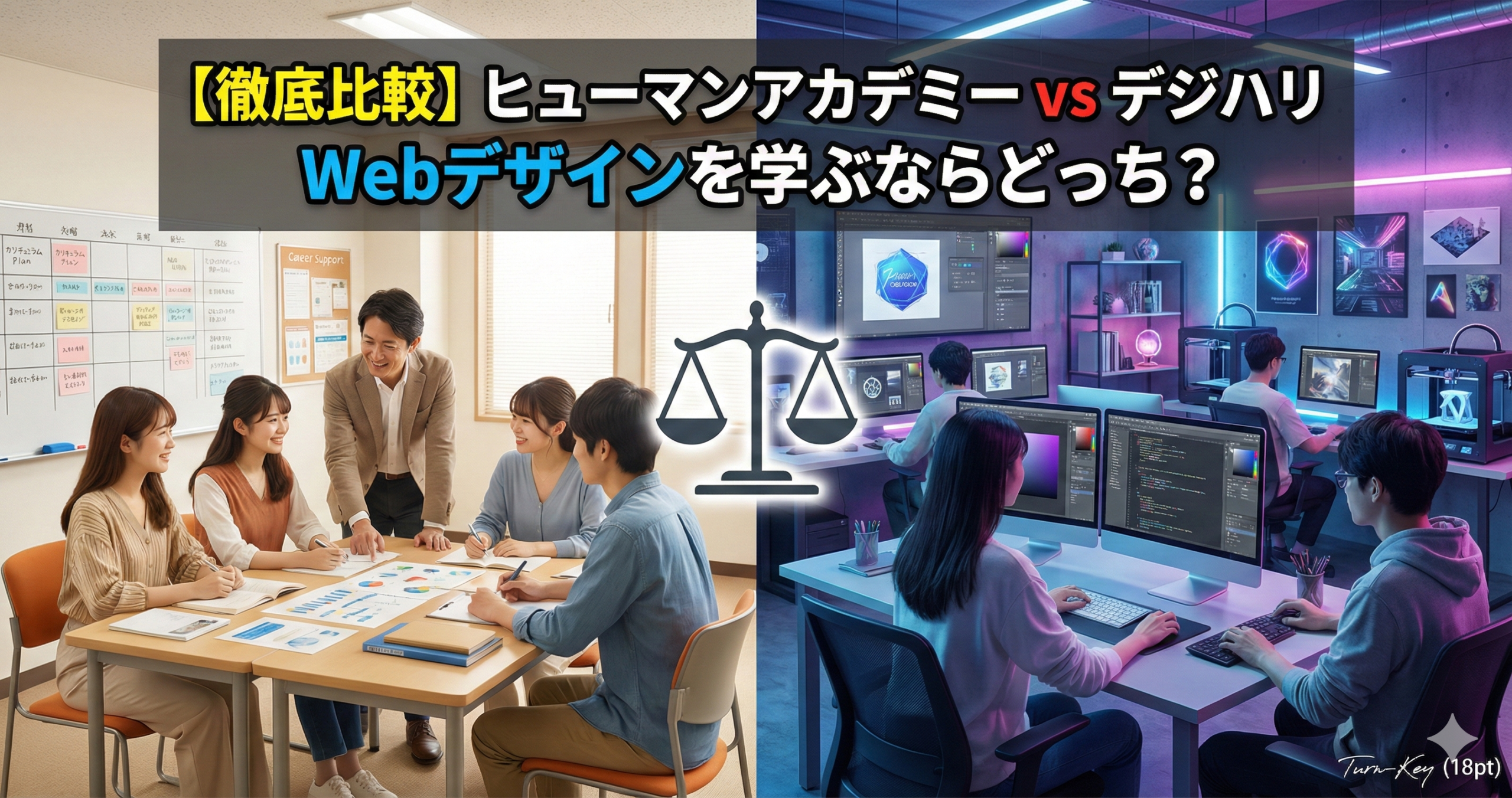 「Webデザインスクールといえば、ヒューマンアカデミーかデジタルハリウッド」。この二大巨頭の名前を前に、多くの人が頭を悩ませます。どちらも大手で実績があり、一見すると似ているようで、その実、目指せるゴールも、学習スタイルも全く異なります